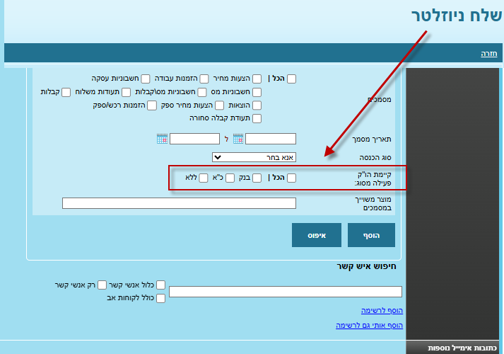 באופן הזה הניוזלטר ישלח רק לאנשי הקשר שמוגדר להם הו"ק פעילה לפי הסוג שבחרתם