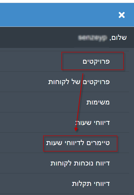 1. ניגש לפרויקטים > טיימרים לדיווח שעות