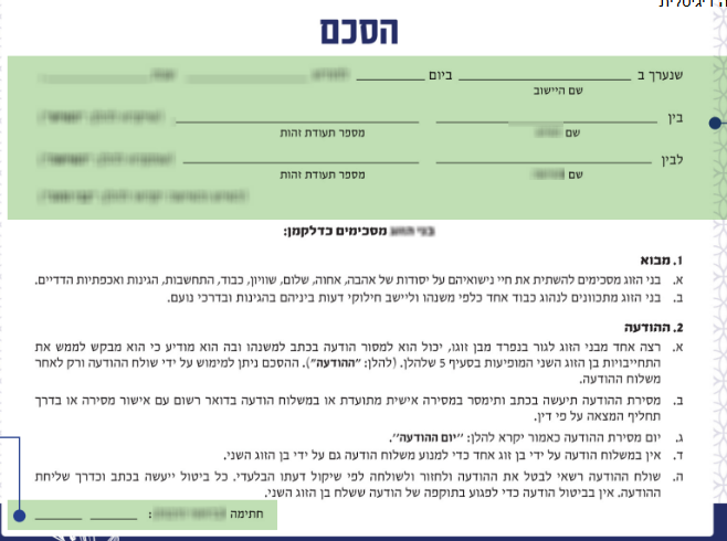 - בהסכם תמונה לחתימה - אתם מעלים תמונה עם כל התוכן של ההסכם כאשר בתמונה יהיו חלקים ריקים שן יכנסו הפרמטרים הרצויים למילוי כגון: שם הלקוח, תעודת זהות וכדומה